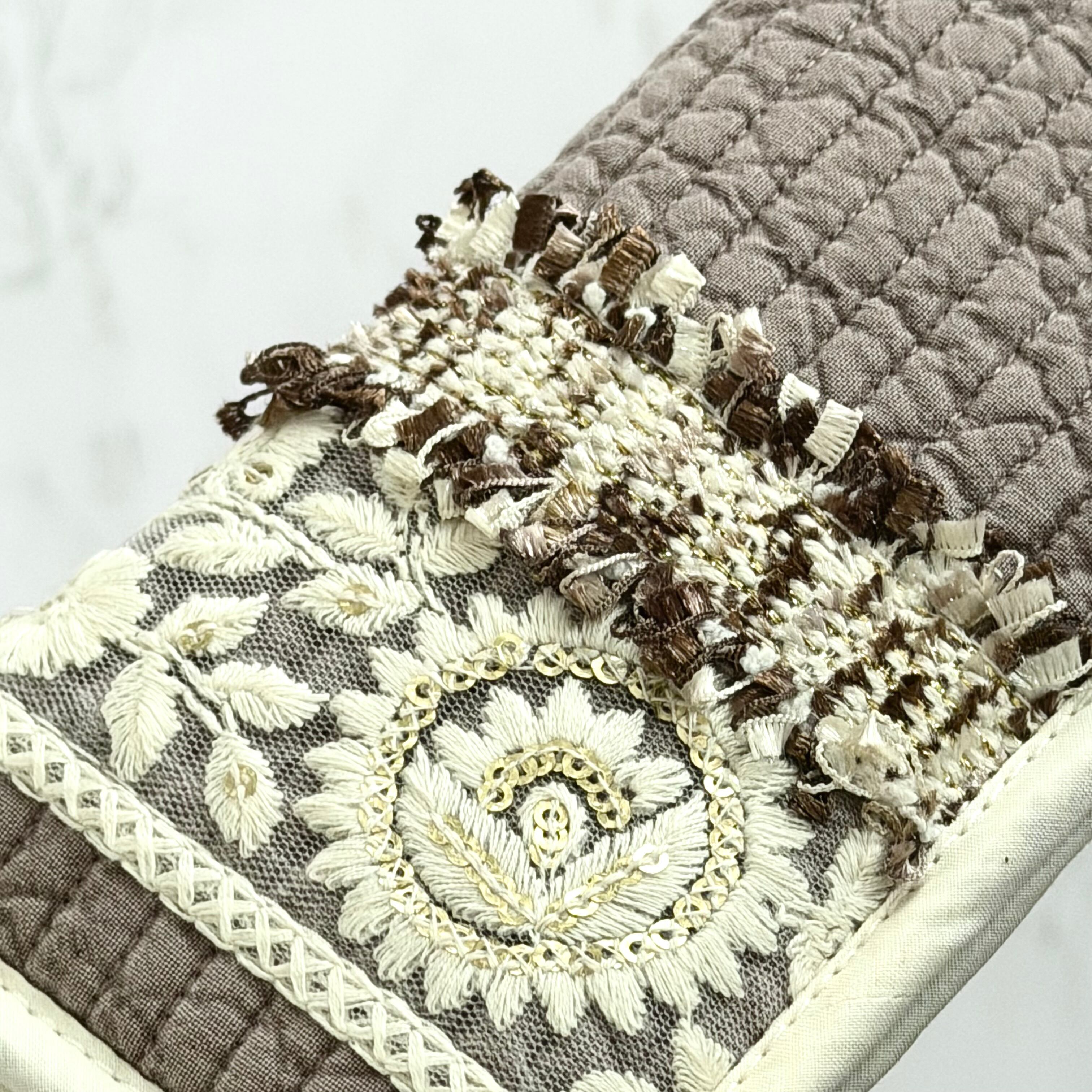 表地…ヌビ(スモーキーブラウン)/インド刺繍リボン/ツイードリボン